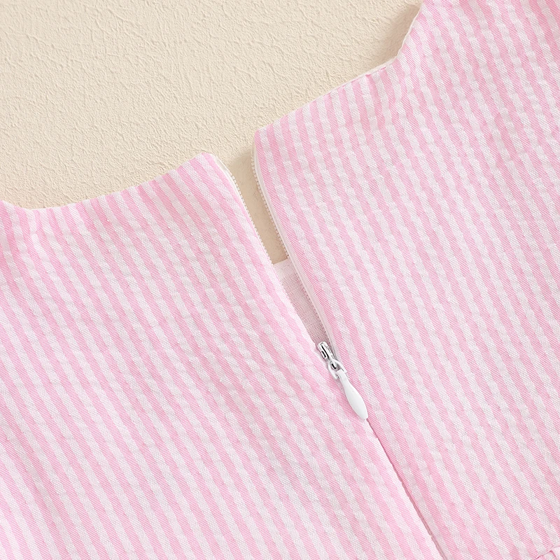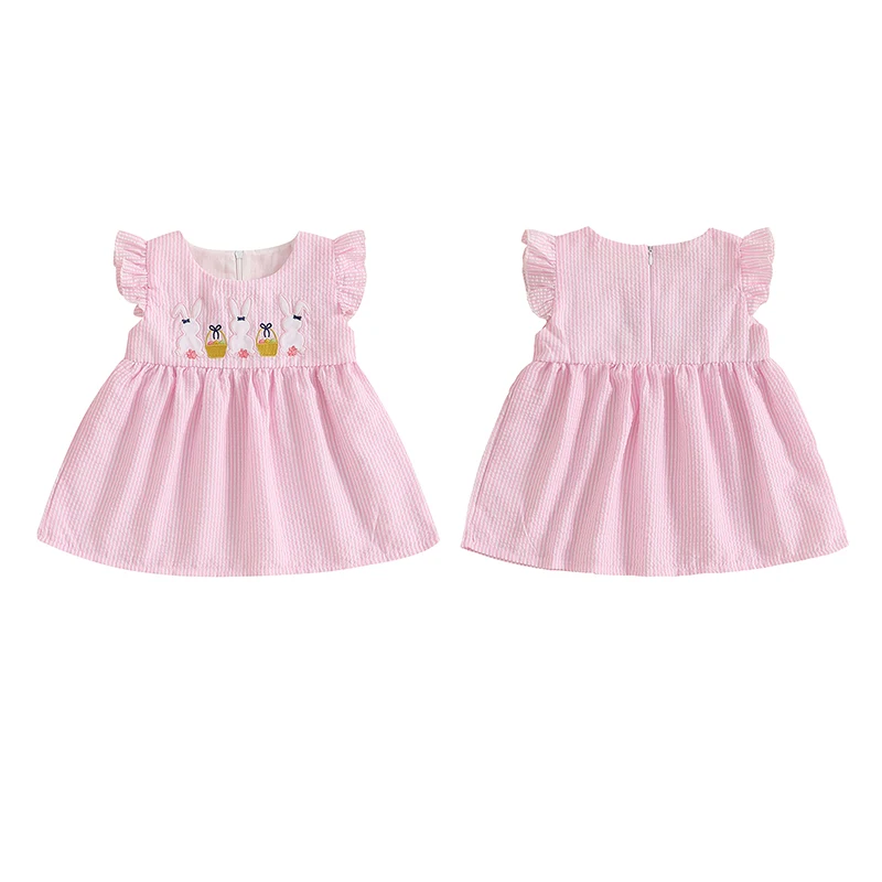 FOCUSNORM 0-4Y Lovely Kids Girls Summer Easter Dress/Romper Ruffle Fly Sleeve Round Neck Rabbit Embroidery A-Line Cute Dres